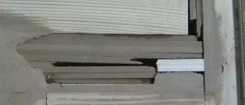 有類商家偷工減料,會擴(kuò)大伸縮縫裂縫的寬度,減小木料用量(如下圖)。