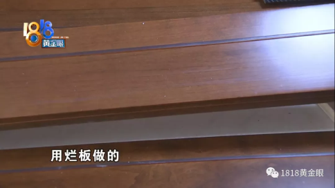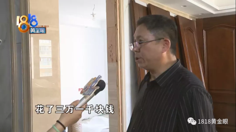 陳老師:“這個(gè)門(mén)送過(guò)來(lái),發(fā)掘問(wèn)題了,就這個(gè)門(mén)整個(gè)開(kāi)裂的,門(mén)上面裂開(kāi)以下裂開(kāi),都有問(wèn)題的,門(mén)的邊框板油漆整個(gè)起泡的,護(hù)墻就是爛的,用爛板做的,(原本)理應(yīng)是高質(zhì)木門(mén)高質(zhì)材質(zhì) 。”