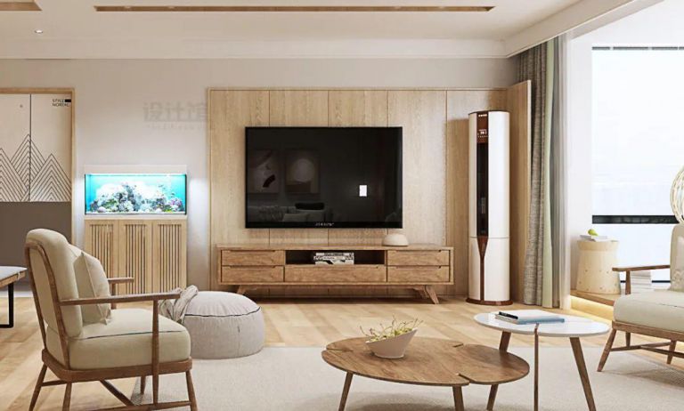 木飾面與護墻板的材質類似,不過木飾面一般都是以木色為主,視覺效果相對比較簡約自然;一般用木飾面做電視墻的話,建議選用橡木色的,這種木色比較淺、紋理也自然,整體效果會更加簡約大方。
