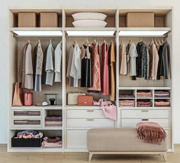 還有其他幾種方法可以節省空間并使步入式衣櫥中的物品易于抓取。嘗試使用隔板或額外的懸掛桿。抽屜插件可讓您的物品取用。