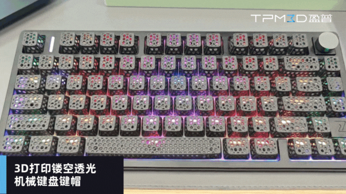 機械鍵盤,擁有著比薄膜鍵盤更加出色的壽命和手感,成為游戲玩家的利器以及打工人的生產(chǎn)力工具,已經(jīng)發(fā)展出了豐富的產(chǎn)品形態(tài)和客制化市場。為打造獨特游戲氛圍,設(shè)計師構(gòu)思了具有鏤空透光結(jié)構(gòu)的鍵帽,讓機械鍵盤套件的RGB燈光能夠有更好的效果。傳統(tǒng)注塑無法實現(xiàn)該設(shè)計,盈普使用SLS技術(shù)完美打印出帶有精細鏤空結(jié)構(gòu)的鍵帽,并且還原了OEM高度鍵帽R1-R4的高度曲線,以及單個鍵帽上表面貼合手指弧度的人體工學曲線,讓打印鍵帽使用起來接近注塑鍵帽的舒適度。