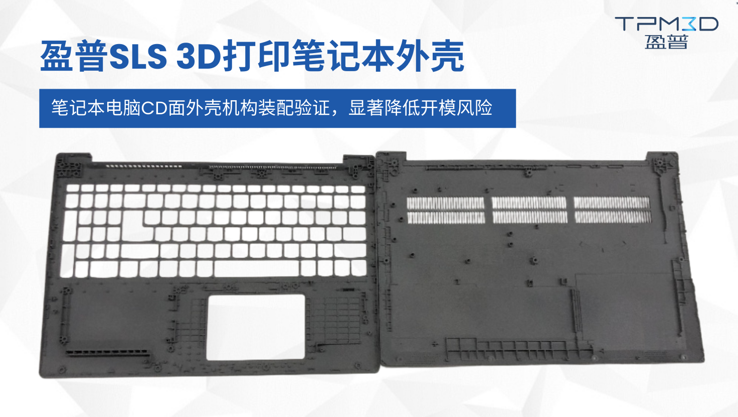 在筆記本電腦緊湊的C面(鍵盤面)和D面(底殼)設(shè)計中,涉及大量精密卡扣、螺絲柱、接口開孔以及內(nèi)部加強筋布局。利用盈普SLS一次性打印出整個C/D面組件原型,工程師可進行真實的主板、電池、散熱模組等關(guān)鍵部件的裝配測試,提前發(fā)現(xiàn)并解決潛在的干涉、間隙不均、螺絲柱強度不足等問題,確保量產(chǎn)結(jié)構(gòu)設(shè)計的可靠性,顯著降低開模風險。